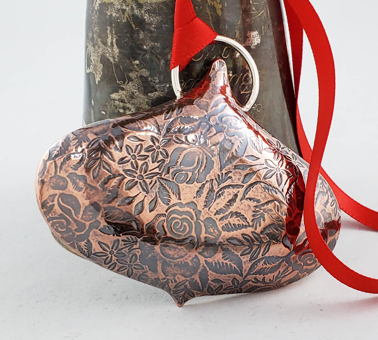 A beautiful handmade copper Christmas ornament ready to shine bright on your Christmas tree this year.