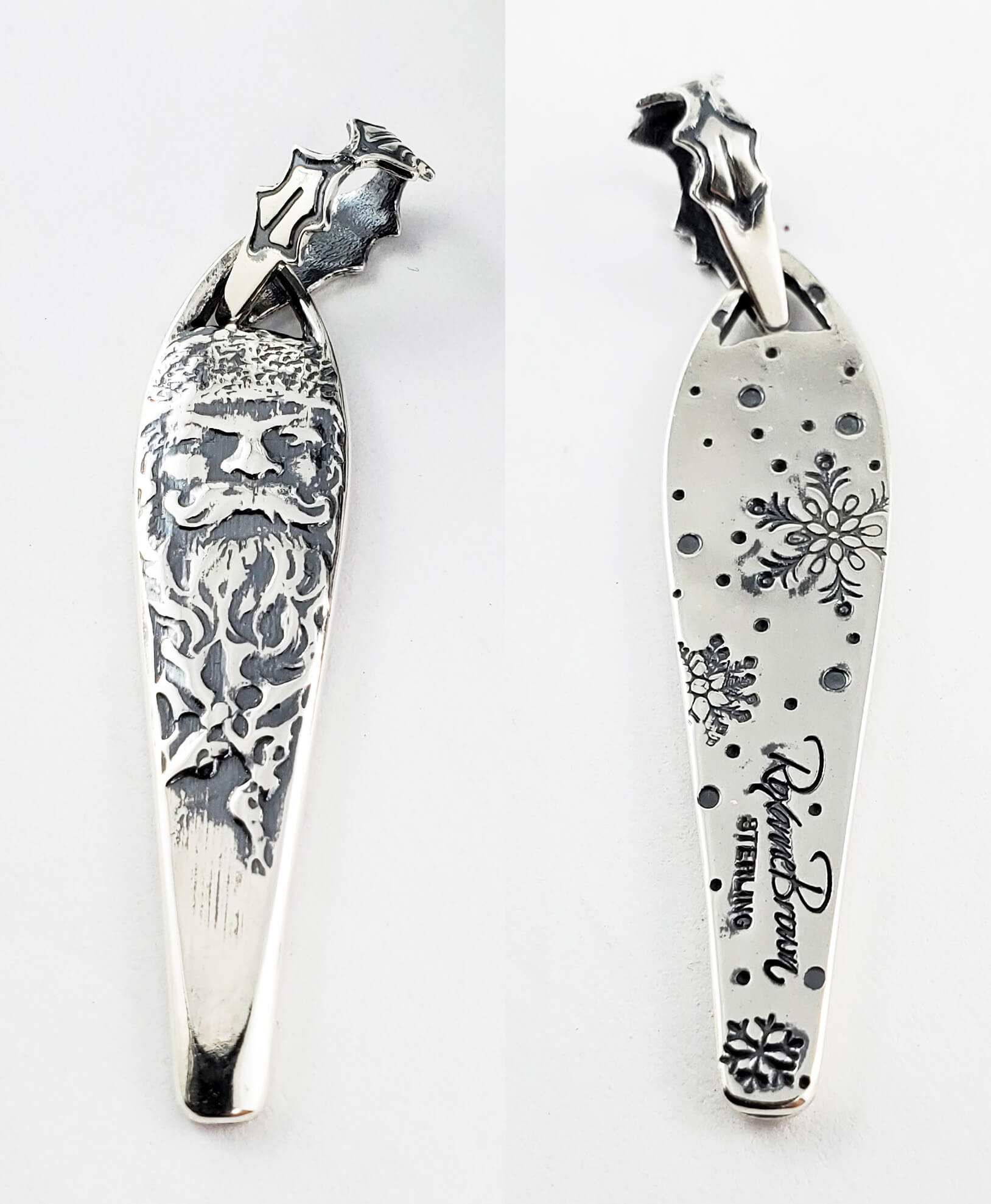 This original Santa design was hand carved into a block of steel over half a century ago and has not been in production for as long. Today he lives once again. An old design for a new era.